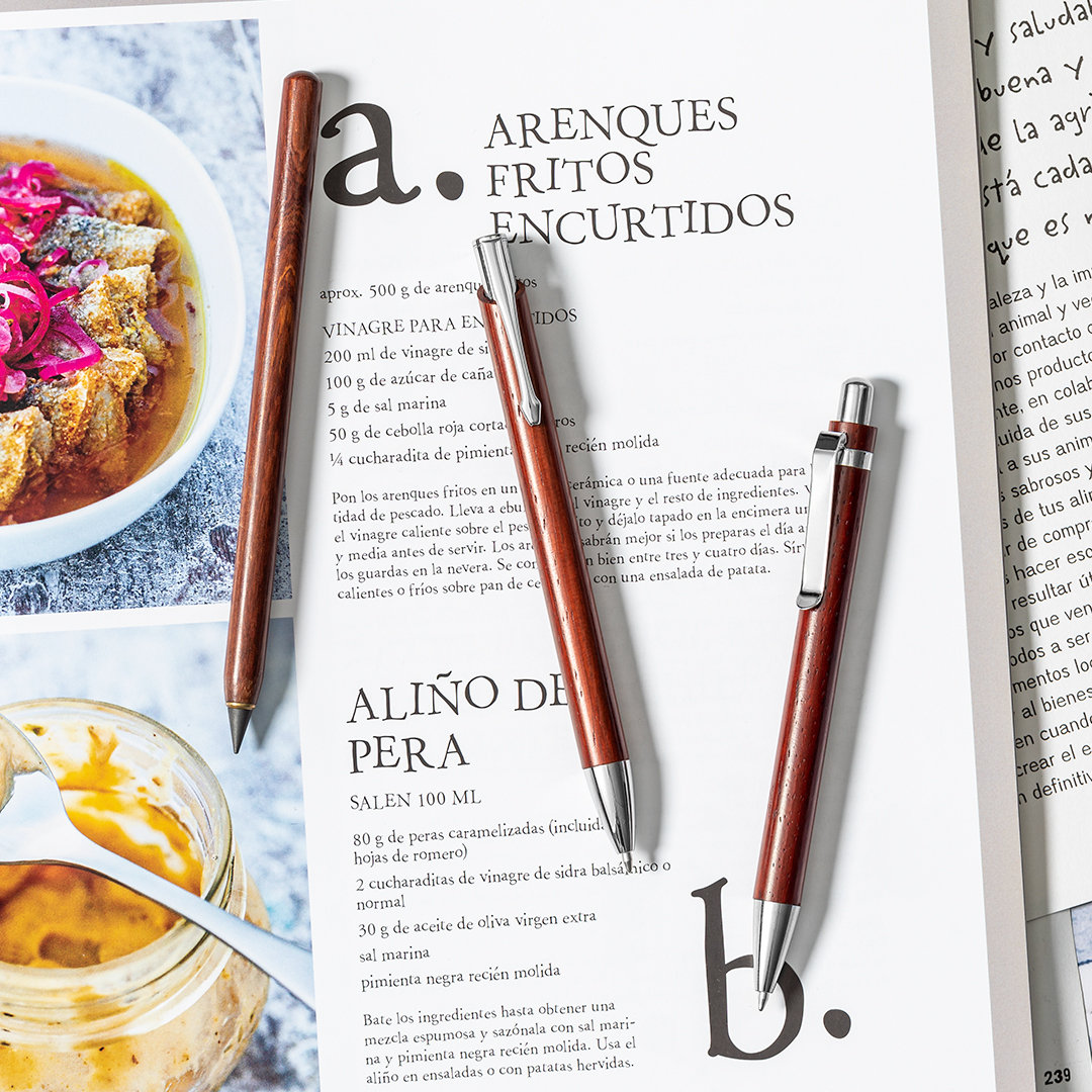 Vino y accesorios hosteleriaBolígrafo de línea nature, con cuerpo fabricado madera natural. De mecanismo pulsador y accesorios en cromado, con amplio clip metálico para grabado en láser. De cartucho jumbo y en tinta azul. Carga Jumbo