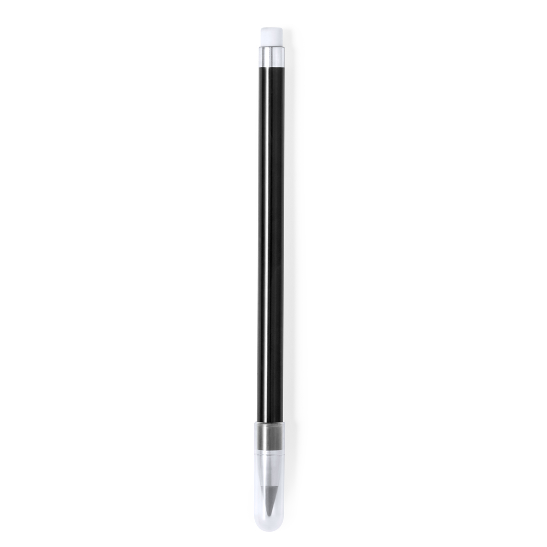 Lápiz eterno fabricado en resistente ABS. Reutilizable y con escritura infinita, para usar siempre el mismo lápiz y no generar residuos. Incluye goma de borrar en la parte superior del lápiz, capucha para proteger la punta, con estilo elegante combinando elementos de colores con elementos en plata. Disponible en una amplia gama de colores.