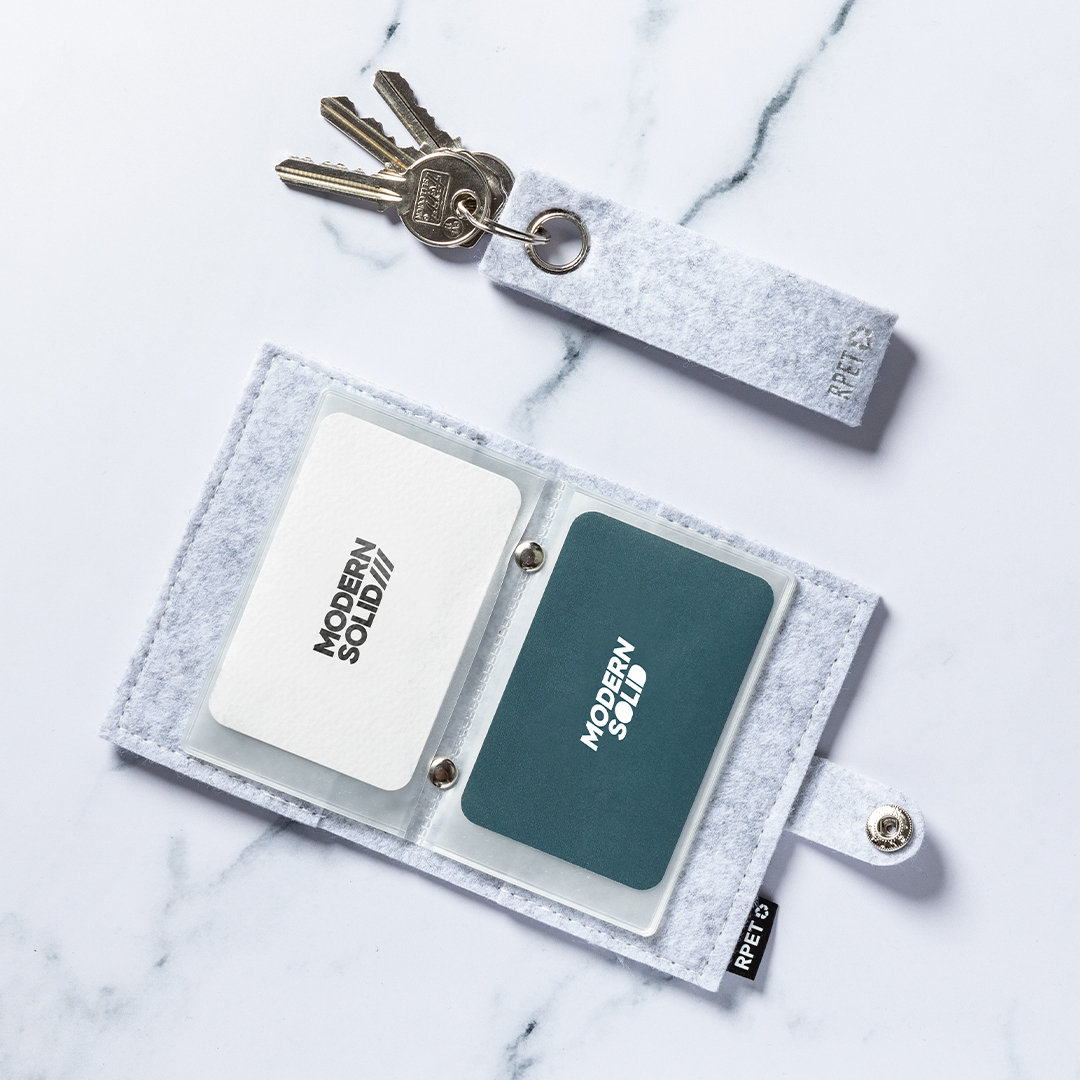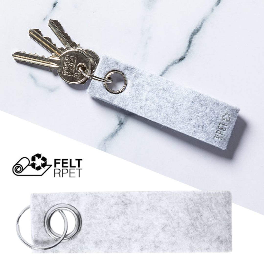 Vino y accesorios hosteleriaElegante llavero con cinta fabricada en fieltro RPET y ojal metálico cromado. Con distintivo fieltro RPET en la cinta y anilla metálica cromada. El fieltro RPET es fruto de la combinación del proceso de reciclaje de materiales plásticos junto con la técnica milenaria de fabricación del fieltro, dando como resultado un material de eco-tendencia que, además de ser de origen reciclado, también se convierte en reciclable.