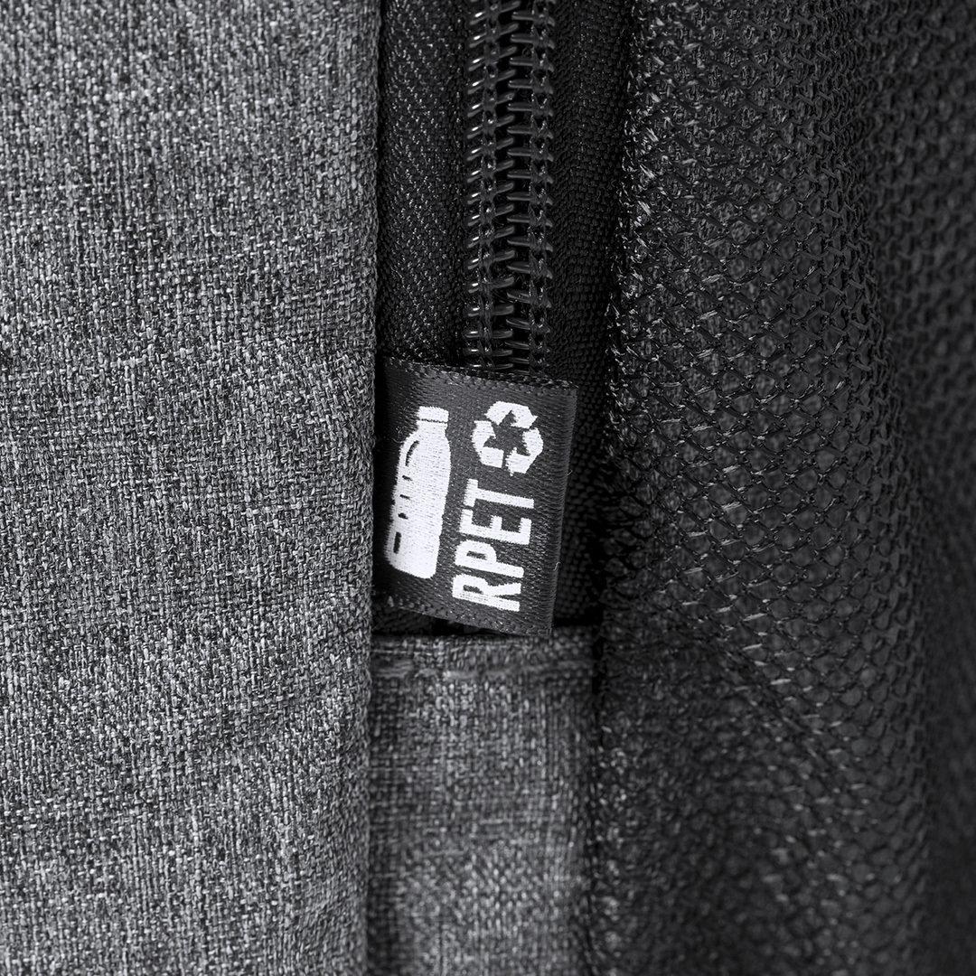 Vino y accesorios hosteleriaMochila nevera 10L de línea nature, fabricada en resistente poliéster RPET 600D de alta calidad, elaborado a partir de plástico reciclado para así fomentar la reutilización de residuos plásticos y contribuir a la sostenibilidad del planeta. Compartimento principal con cierre de cremallera de doble tirador, con interior en PEVA. Con bolsillos laterales en redecilla y bolsillo frontal de acceso rápido con cierre de cremallera y tirador. Banda elástica en la parte superior, y en bolsillo en la parte trasera.Totalmente acolchada. Distintivo RPET en etiqueta. Acolchada