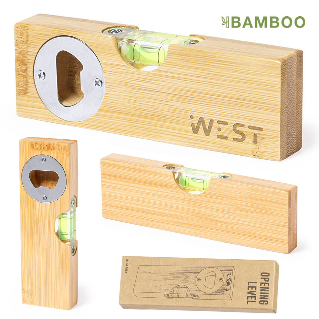 Vino y accesorios hosteleriaNivel de línea nature fabricado en bambú, con abridor metálico integrado. Presentación en caja individual de diseño kraft.