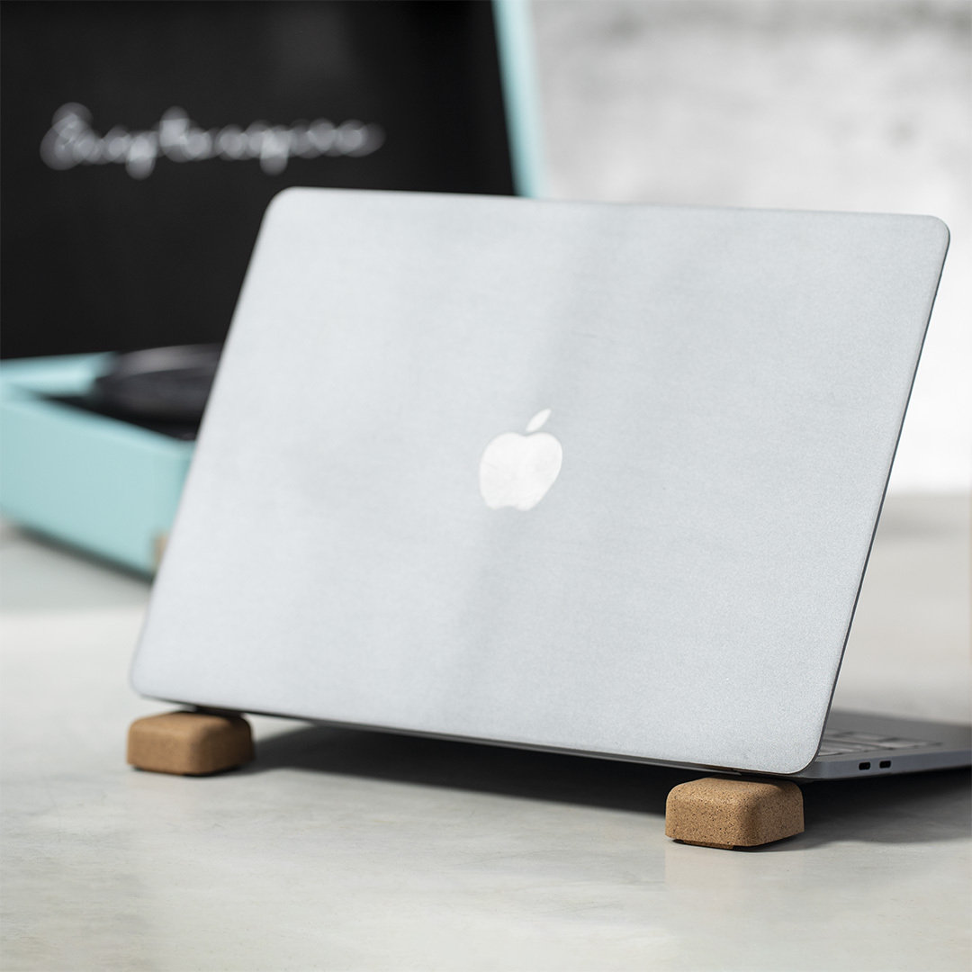 Vino y accesorios hosteleriaCompacto soporte de línea nature para ordenador portátil. Fabricado en corcho, para así fomentar la utilización de materias primas naturales y reducir las emisiones de contaminantes. Magnético y antideslizante, presentado en atractiva caja individual de diseño eco. Magnético