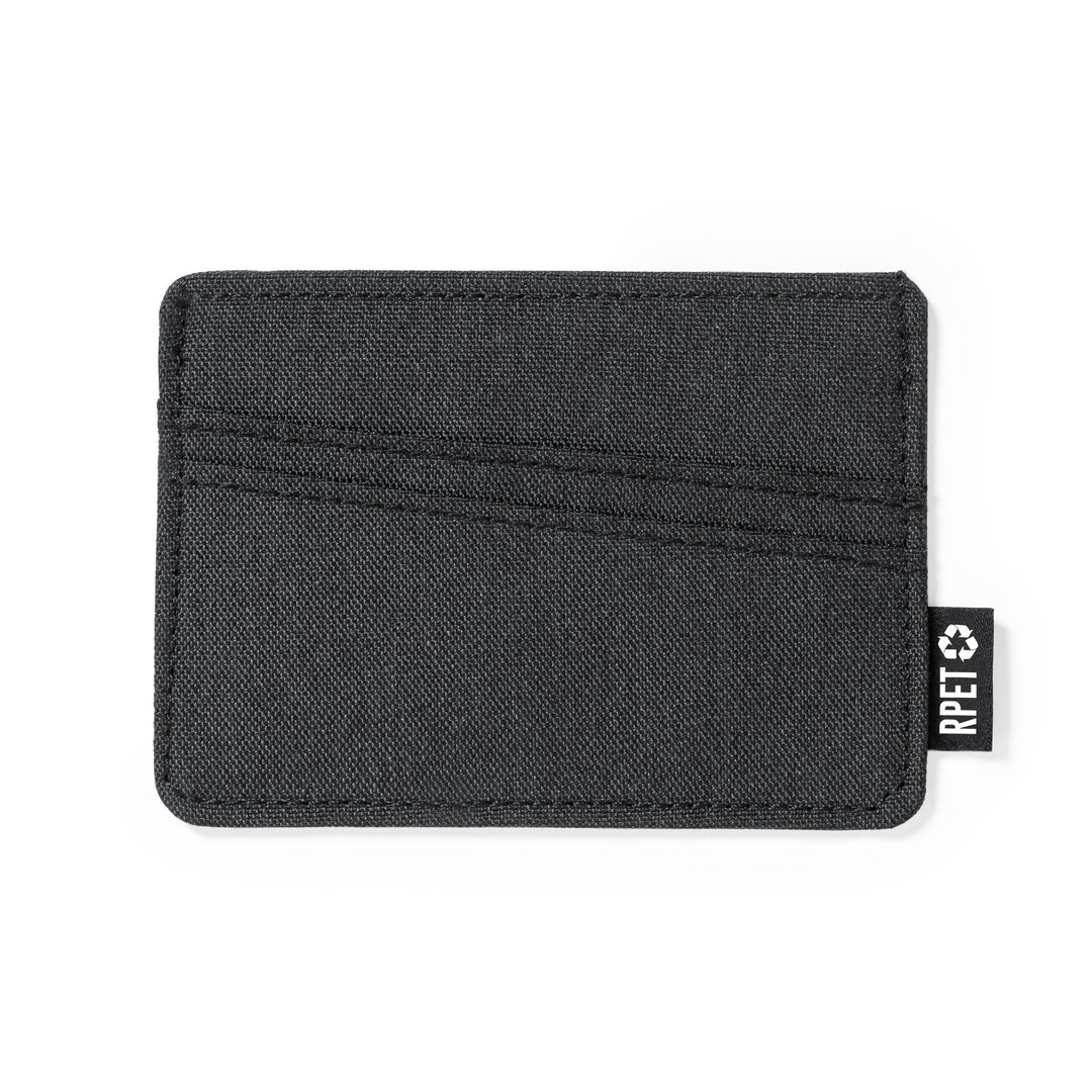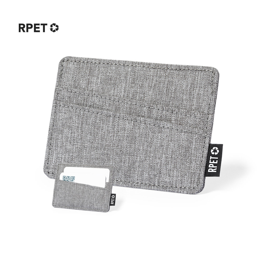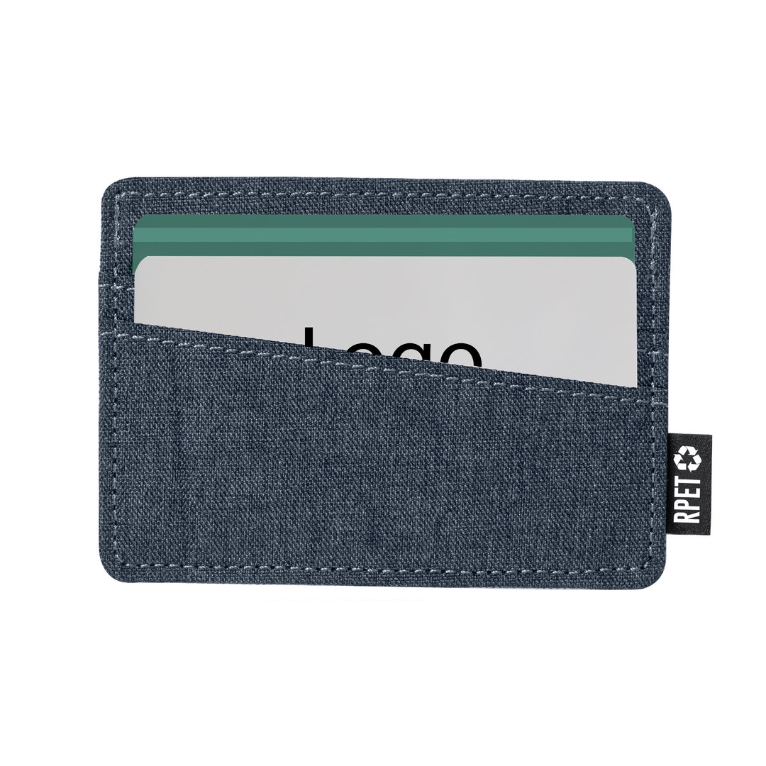 Vino y accesorios hosteleriaElegante tarjetero fabricado en poliéster RPET 300D. Con 3 compartimentos independientes para tarjetas y distintivo RPET en la etiqueta exterior. El material RPET se elabora a partir de plástico reciclado, para así fomentar la reutilización de residuos plásticos y ayudar a la sostenibilidad del planeta. 3 Compartimentos